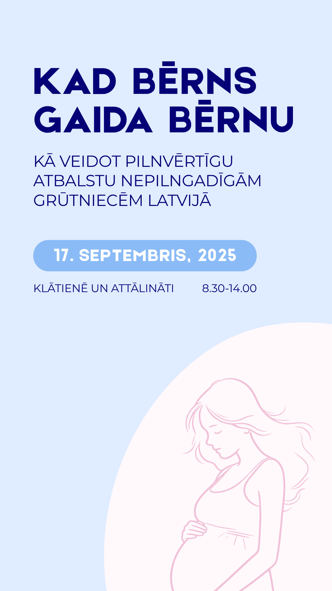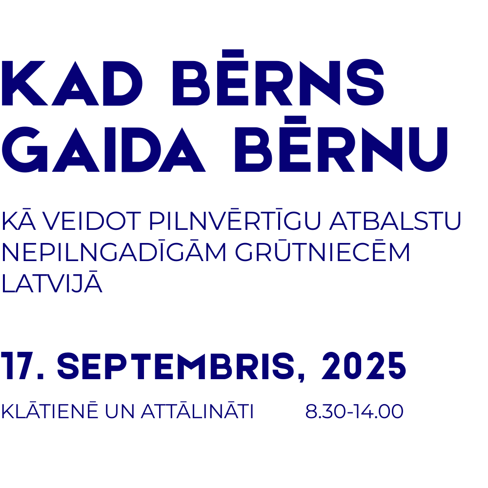 Kad bērns gaida bērnu, svarīgs ir ikviens solis - no politikas līdz praktiskam atbalstam. Nepilngadīgu grūtnieču tēma Latvijā ir aktuāla, taču sabiedrībā reti apspriesta. Konference pulcēs valdības un pašvaldību, nevalstisko organizāciju un dažādu citu saistīto nozaru profesionāļus, lai kopīgi runātu par cēloņiem, risinājumiem un nepieciešamajiem soļiem pilnvērtīgas atbalsta sistēmas izveidē.